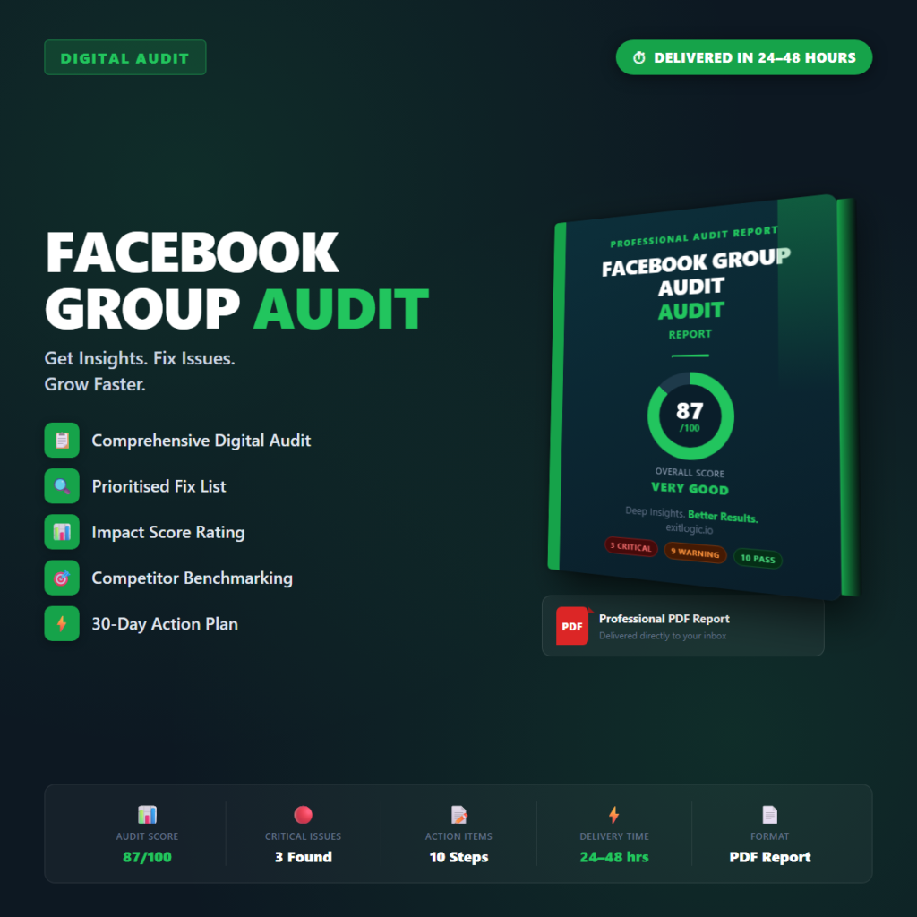 Your Facebook Group Audit surfaces the specific issues costing you revenue, users, or rankings in this area ββ¦