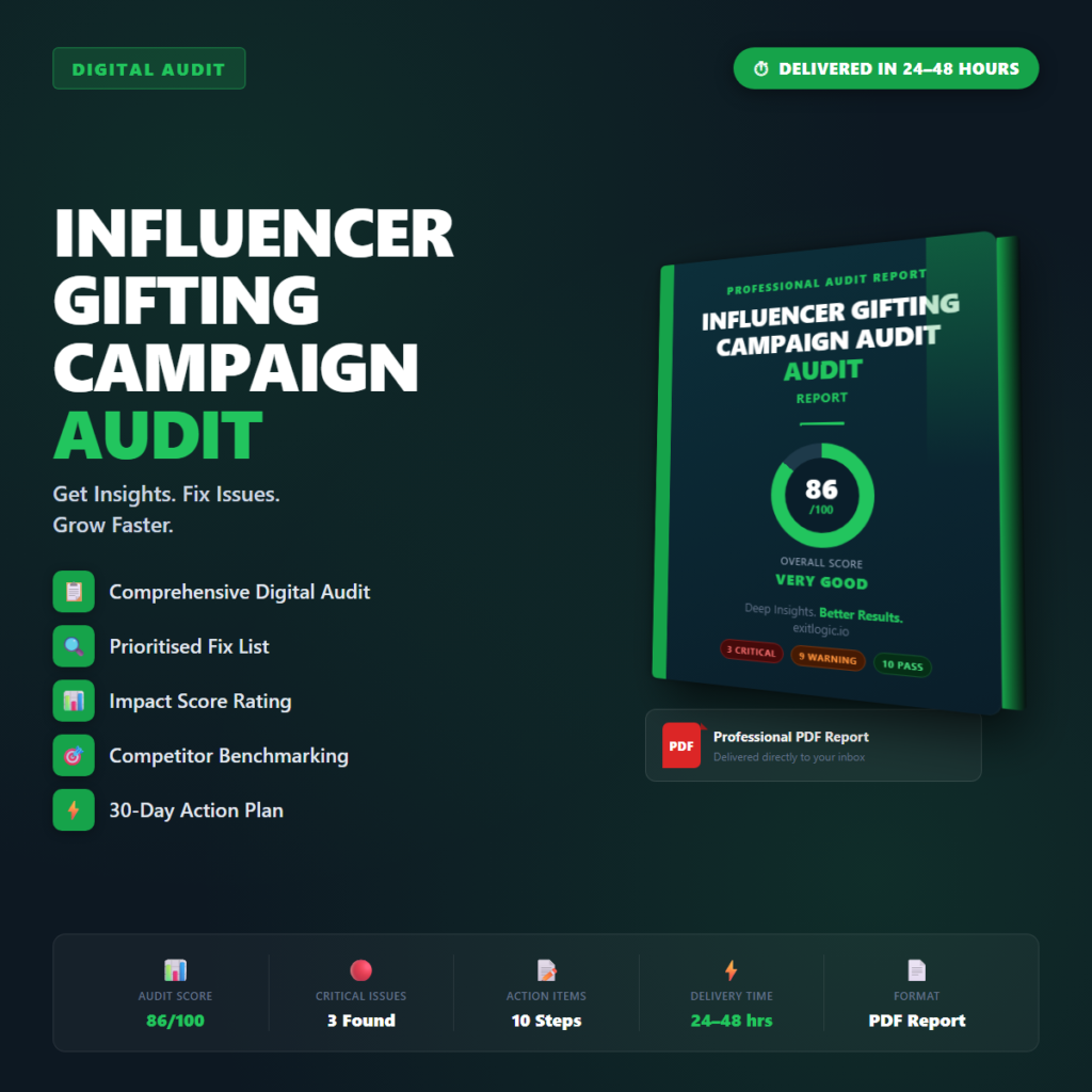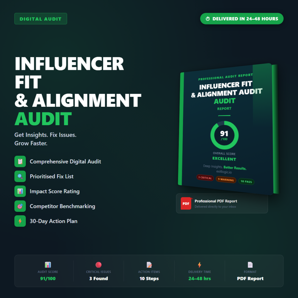 Your Influencer Fit & Alignment Audit surfaces the specific issues costing you revenue, users, or rankings in this…