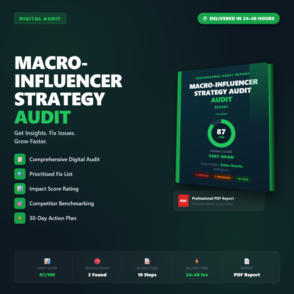 Your Influencer Reel & Short Video Audit surfaces the specific issues costing you revenue, users, or rankings in…