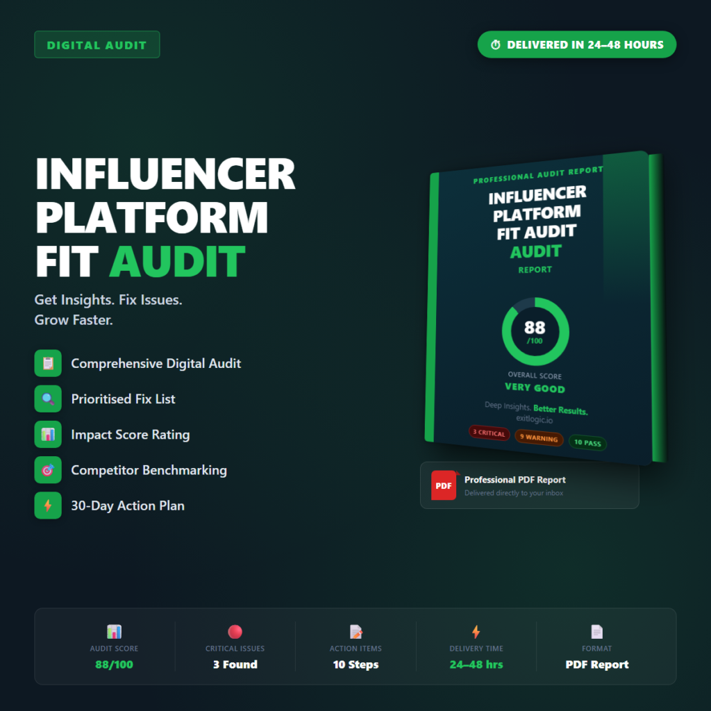 Your Influencer Platform Fit Audit surfaces the specific issues costing you revenue, users, or rankings in this area…