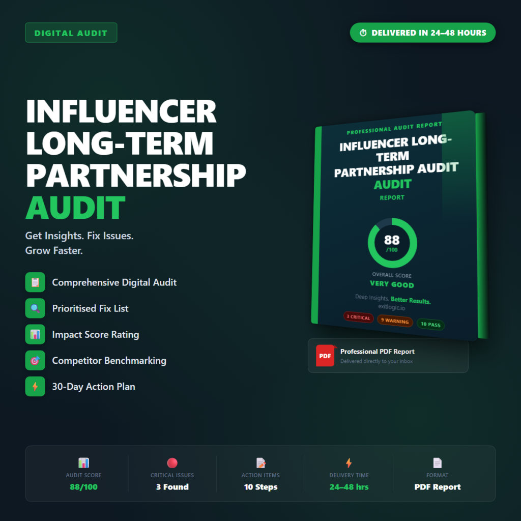 Your Influencer Long-Term Partnership Audit surfaces the specific issues costing you revenue, users, or rankings in this area…