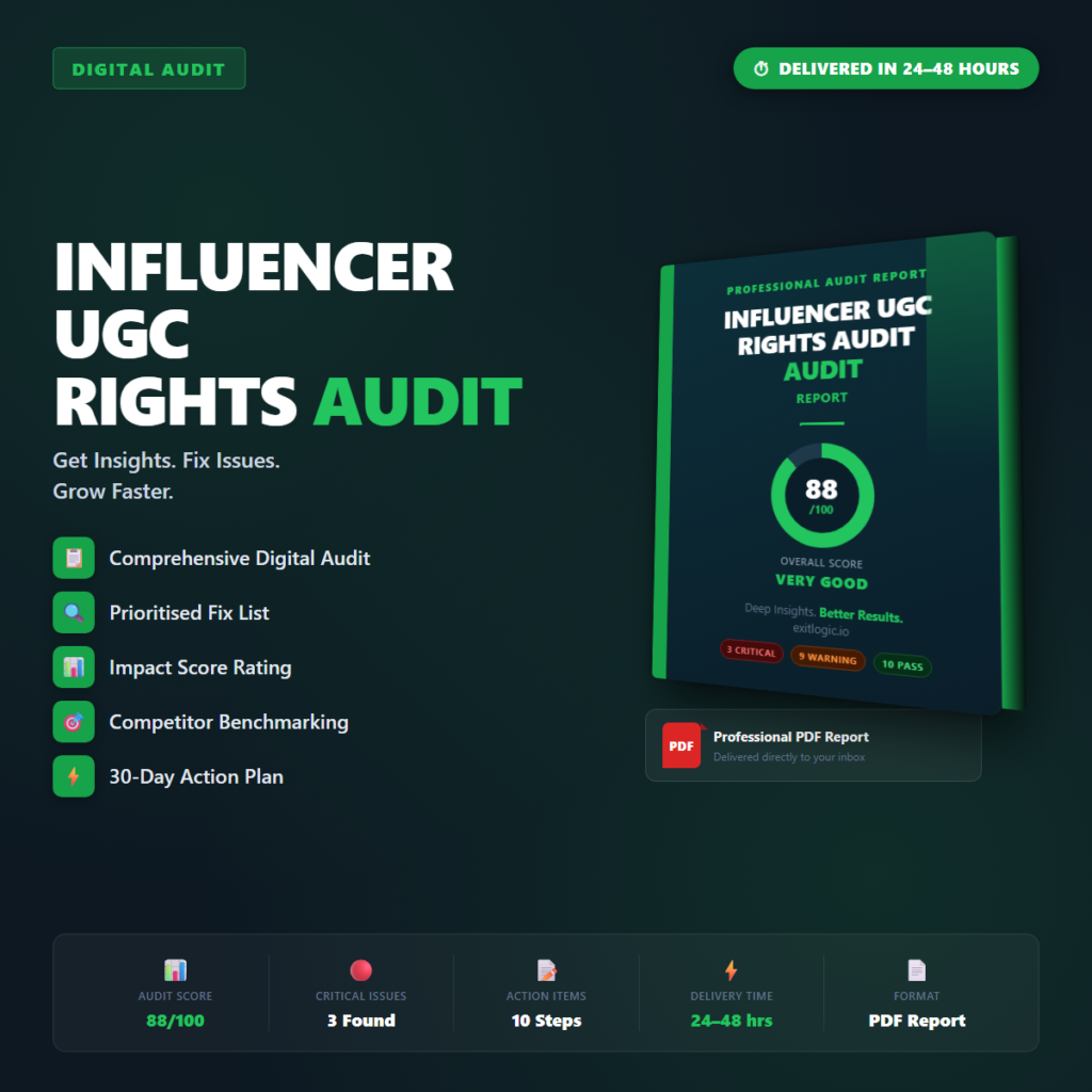 Your Influencer UGC Rights Audit surfaces the specific issues costing you revenue, users, or rankings in this area…