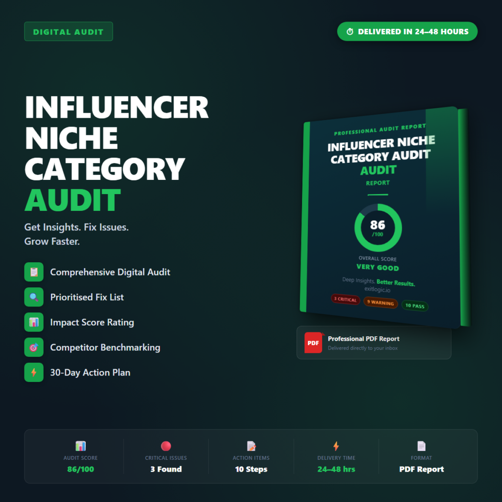 Your Influencer Niche Category Audit surfaces the specific issues costing you revenue, users, or rankings in this area…