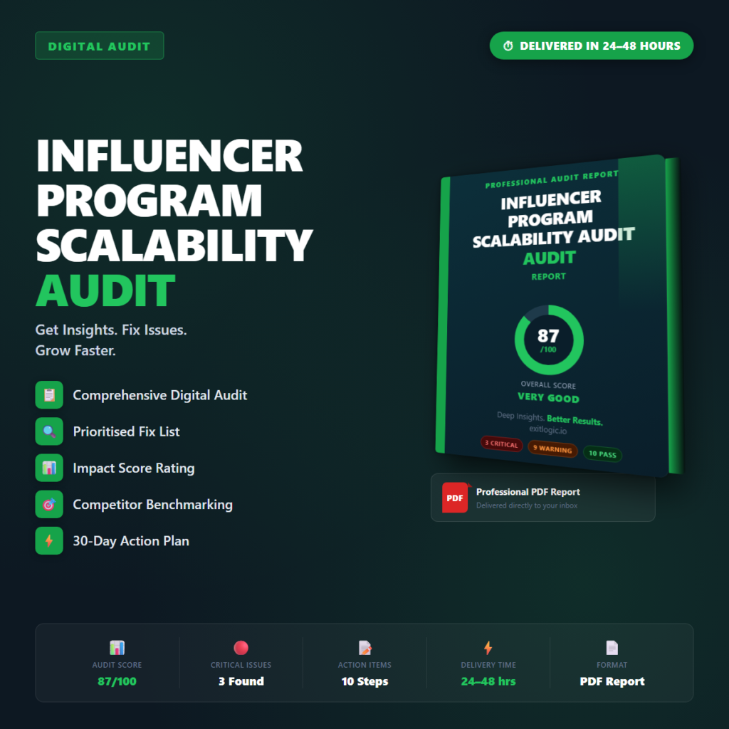 Your Influencer Program Scalability Audit surfaces the specific issues costing you revenue, users, or rankings in this area…