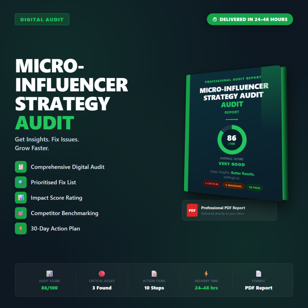 48h delivery Influencer Marketing Audits Micro-Influencer Strategy Audit Getting more traffic is expensive. Converting more of the traffic you already have is not. This audit finds… Add to cart