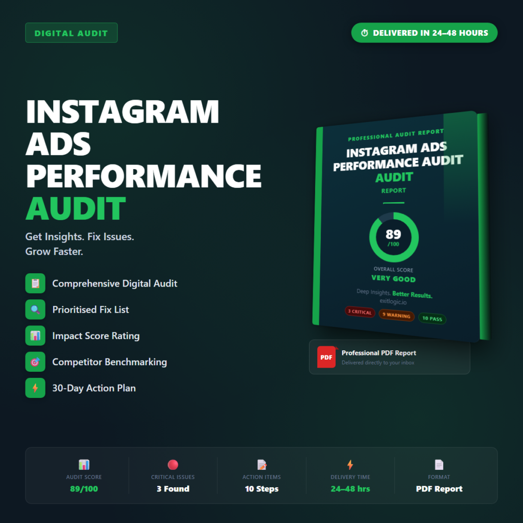 Professional PDF audit report for your Instagram Ads Performance Audit. Delivered within 24โ48 hours. You provide your URLโฆ