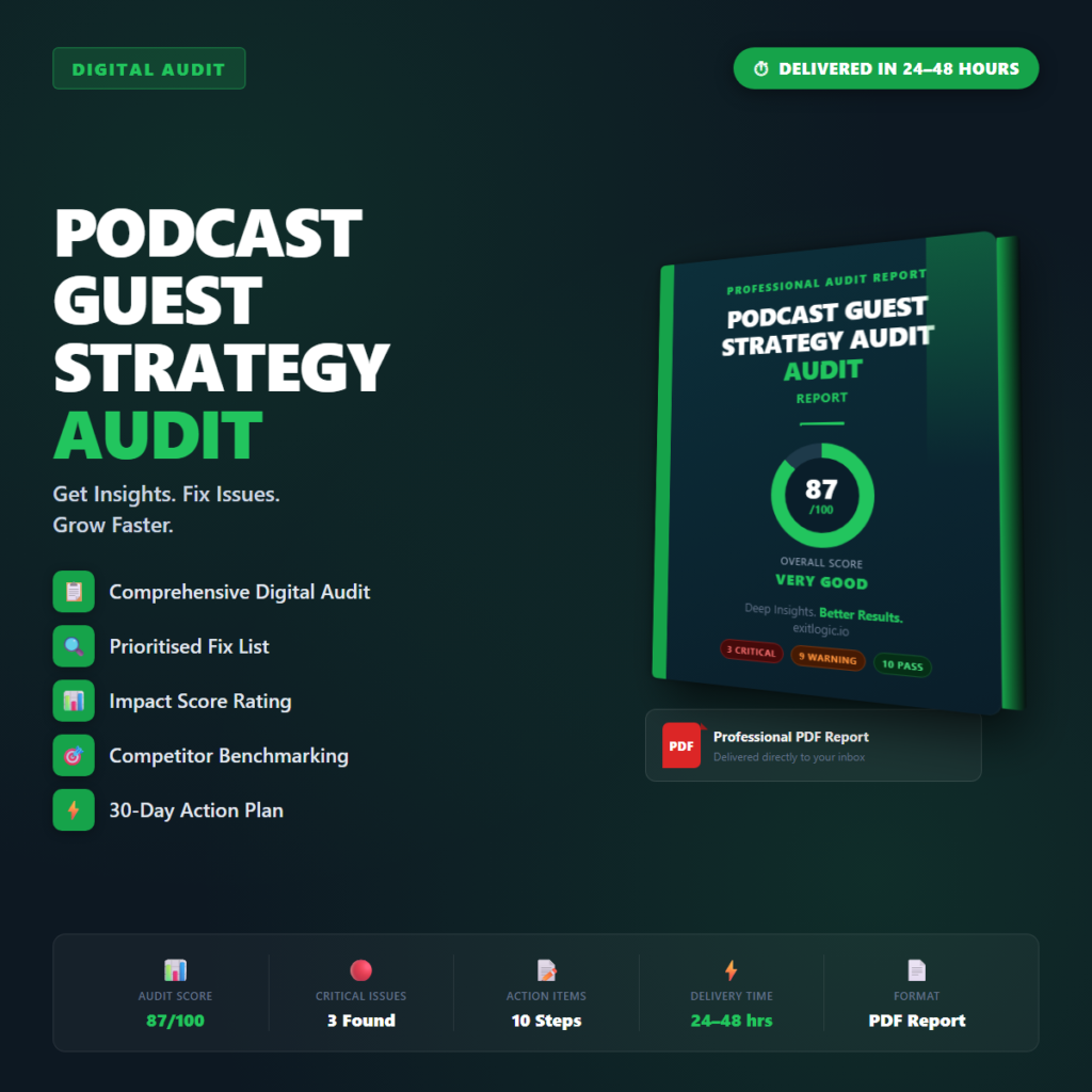Your Podcast Guest Strategy Audit surfaces the specific issues costing you revenue, users, or rankings in this areaβ¦