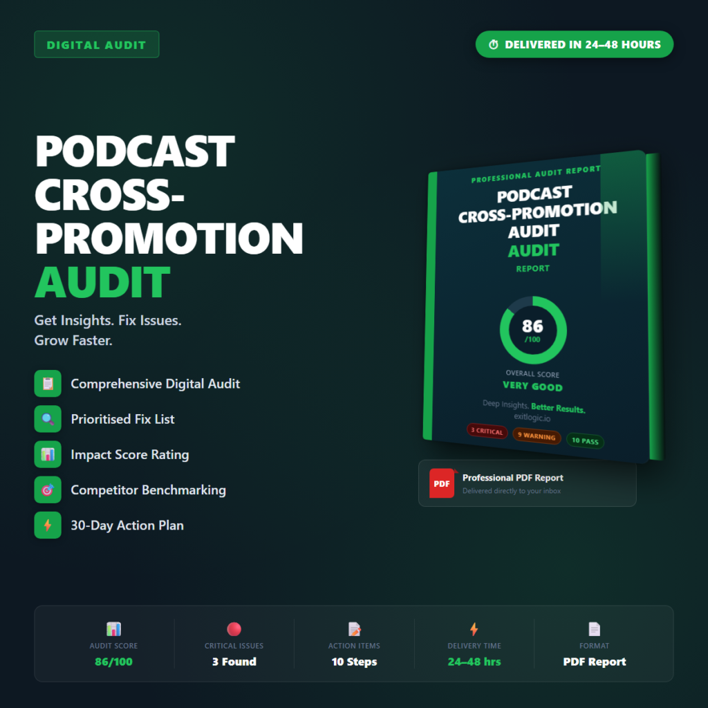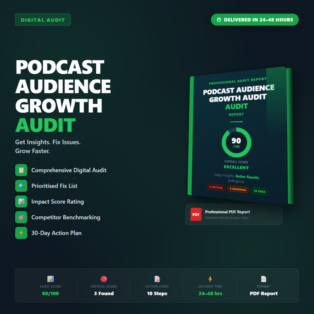 Your Podcast Audience Growth Audit surfaces the specific issues costing you revenue, users, or rankings in this areaβ¦
