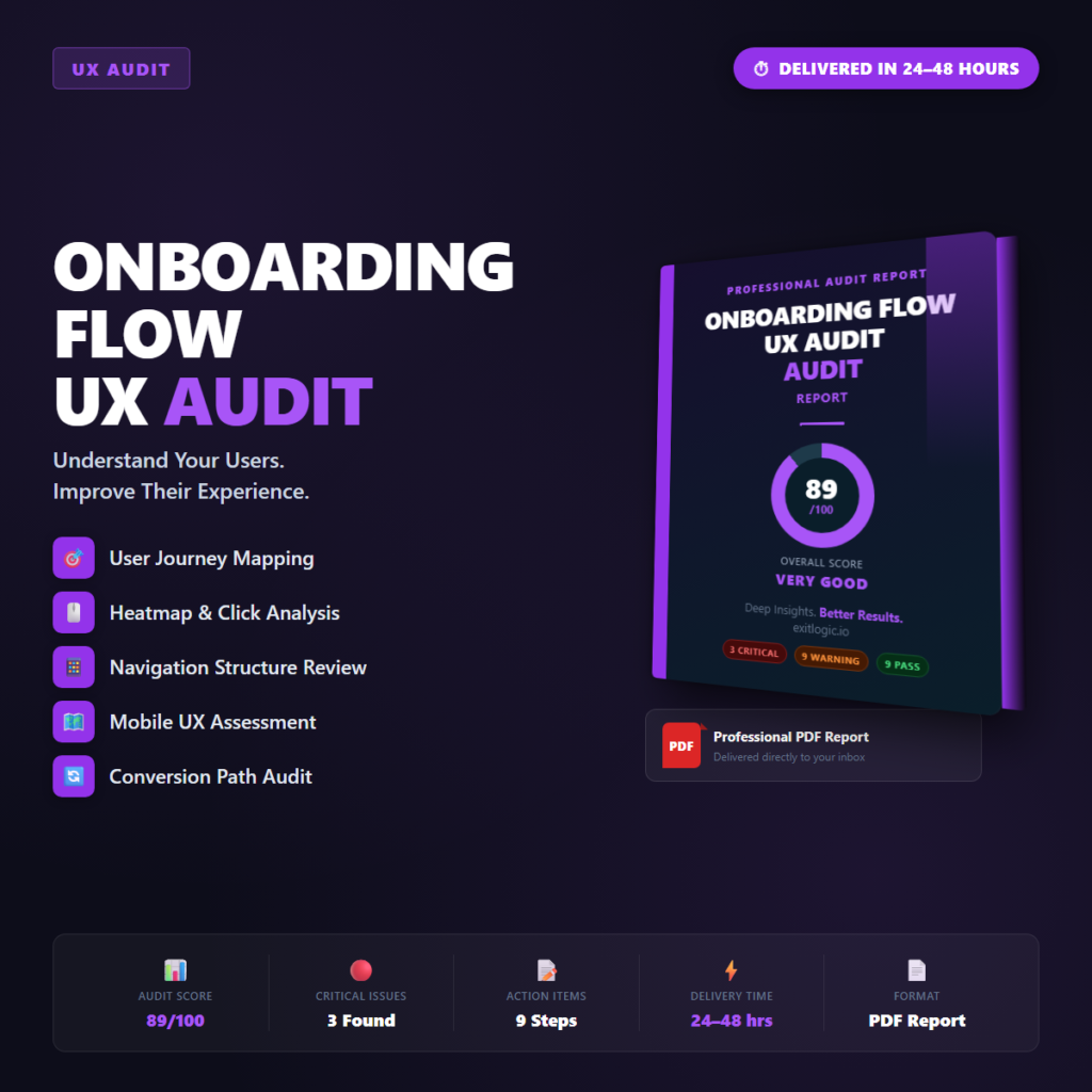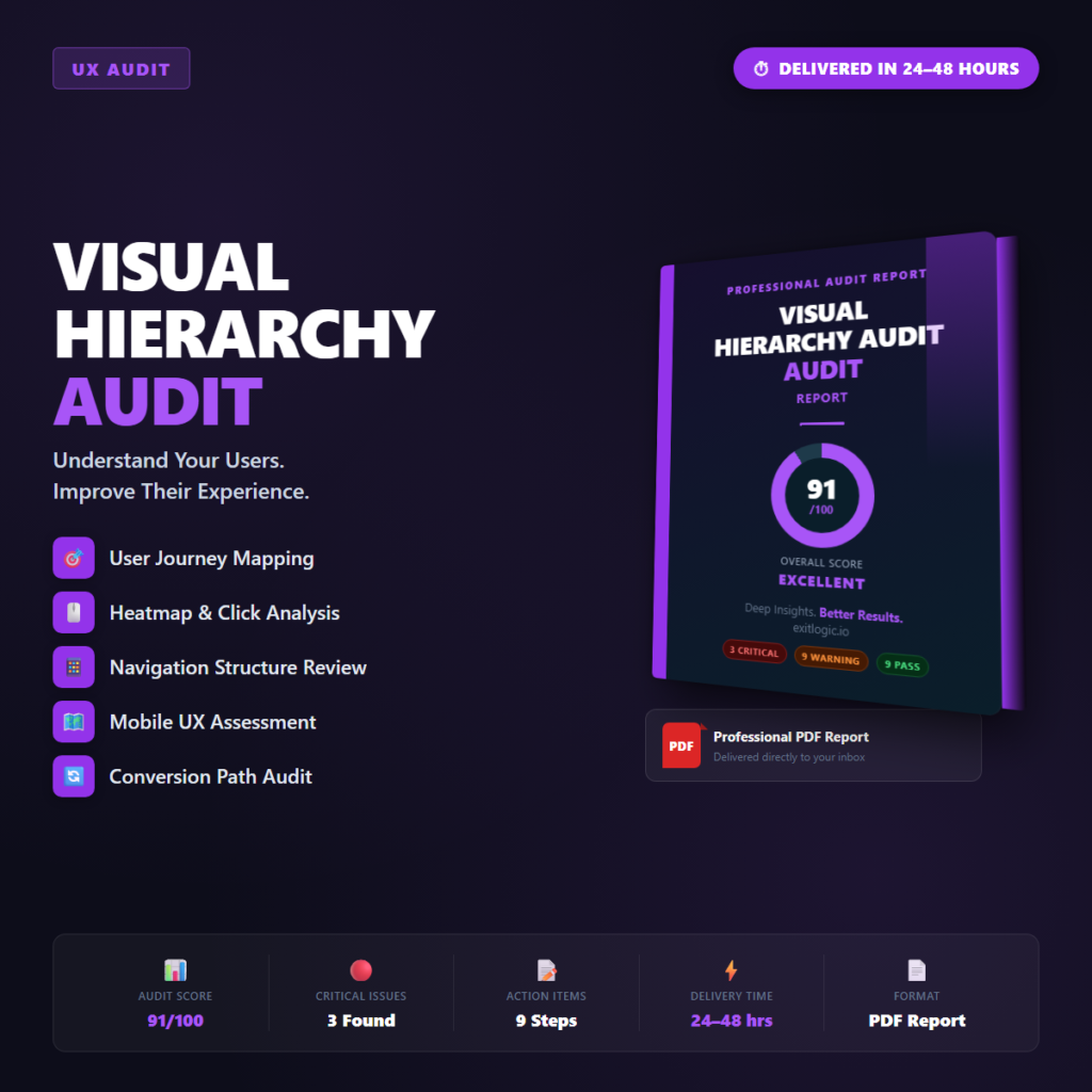 Poor UX bleeds revenue silently β visitors leave without telling you why. This audit finds every friction pointβ¦