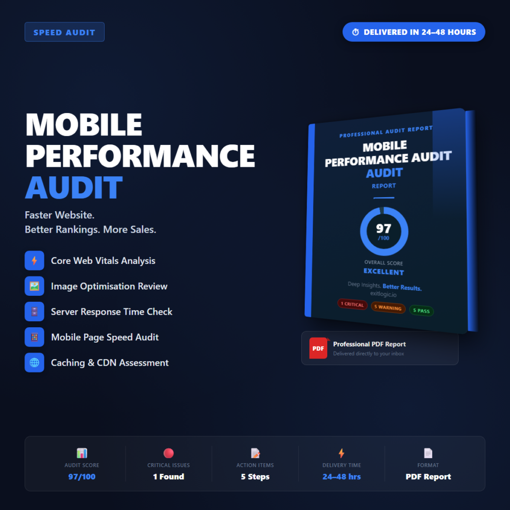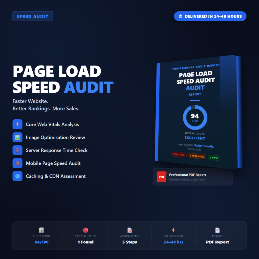 Every second your site takes to load, you lose conversions. This audit finds every bottleneck and gives you…