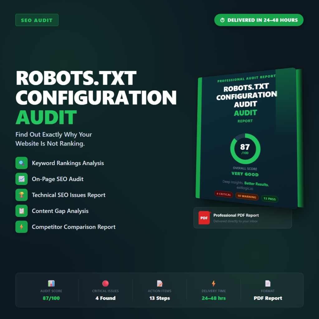 SEO problems compound. A canonical error ignored today becomes a duplicate content penalty tomorrow. A thin page left unfixed keeps dragging down your domain authority. This audit surfaces everything — technical, on-page, and authority — and tells you what moves the needle fastest.